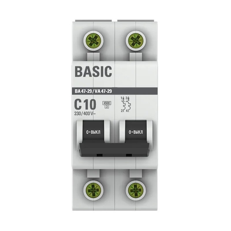 Автоматический выключатель EKF ВА 47-29 4,5кА, С 10А, 2П