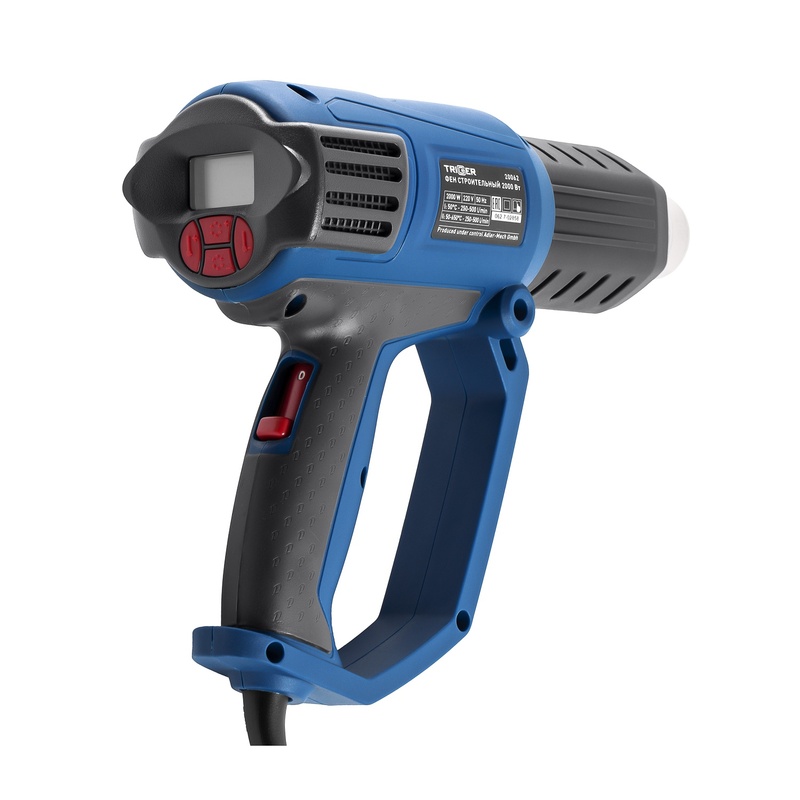 Фен строительный сетевой Trigger 20062, 2 кВт 50-650°, ЖК дисплей 4 насадки, L кабеля=3 м, кейс в Краснодаре