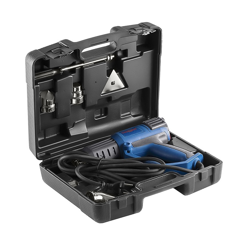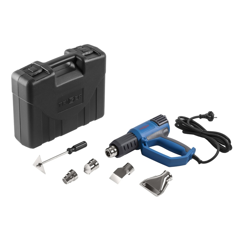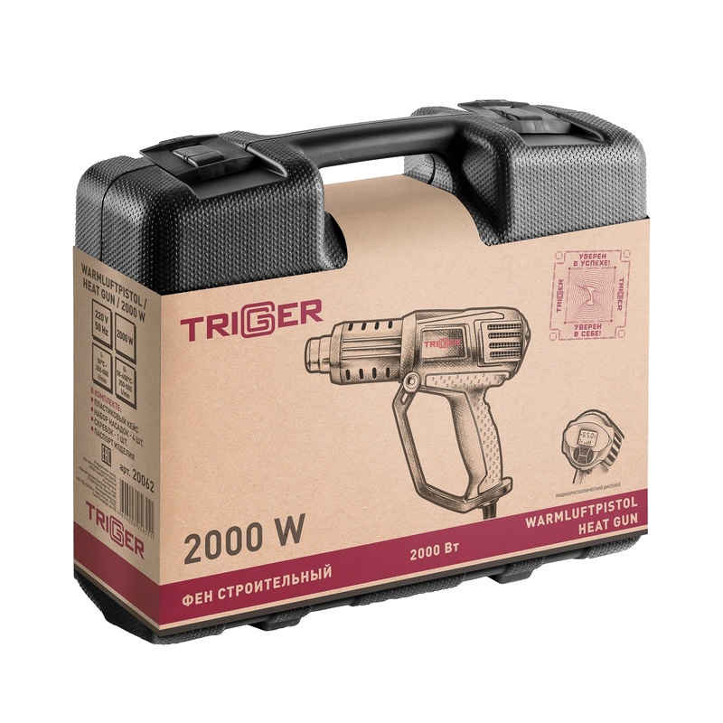 Фен строительный сетевой Trigger 20062, 2 кВт 50-650°, ЖК дисплей 4 насадки, L кабеля=3 м, кейс