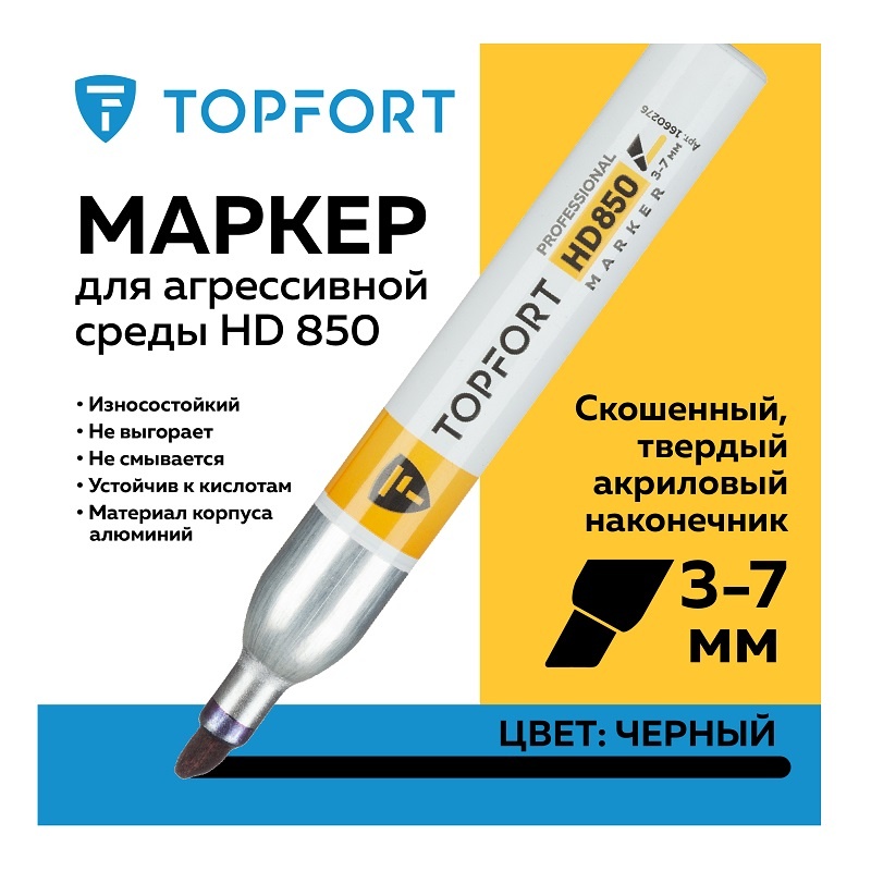 Маркер для агрессивной среды Topfort HD 850 черный 3-7 мм, скош. наконечник в Краснодаре