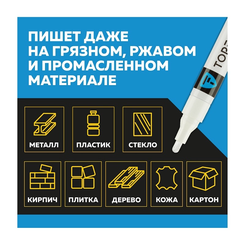Маркер лаковый Topfort Industrial белый 4 мм в Краснодаре