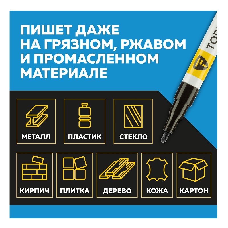 В строительном магазине Сатурн можно купить товар "Маркер лаковый Topfort Paint черный 2 мм" по цене от 153 руб с доставкой за 2 часа по Краснодару или оформить самовывоз.