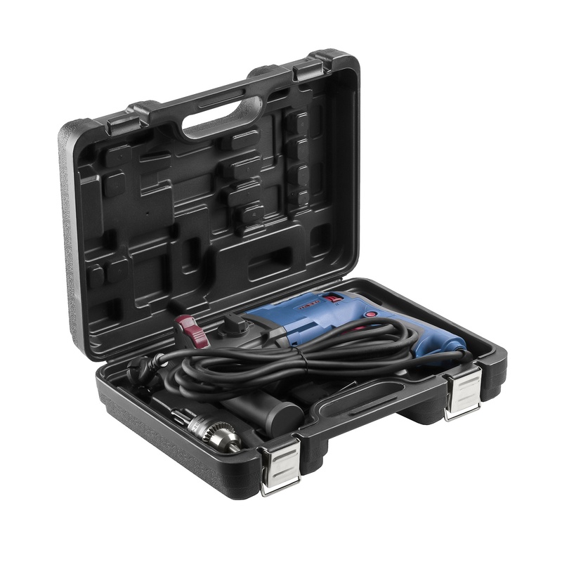 • В комплекте: переходник SDS+, цилиндрический патрон с ключом, дополнительная рукоятка,ограничитель глубины сверления, запасные щетки, пластмассовый кейс.