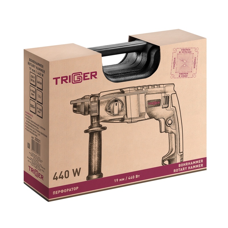 Перфоратор сетевой Trigger 20021, 3 режима 1,2 Дж, кейс, 19 мм, 440 Вт
