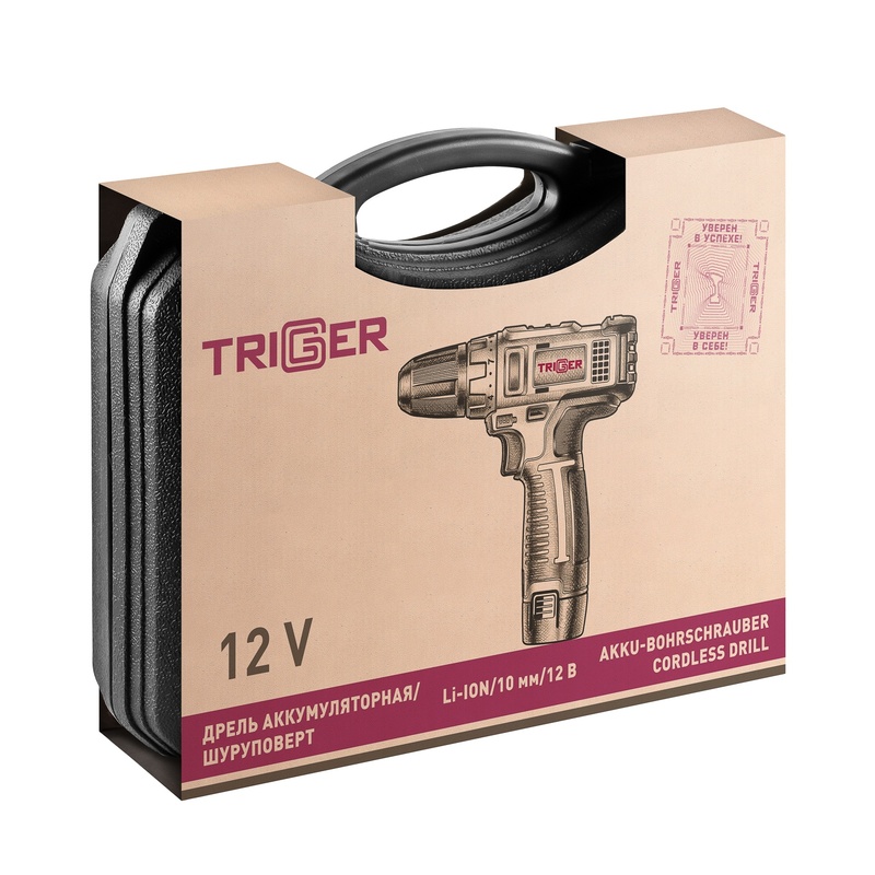 Дрель-шуруповерт Trigger 20101, 2 аккумулятора Li-ion (1,5Ач), 12V, 10 мм, 25 Нм, обойма, кейс