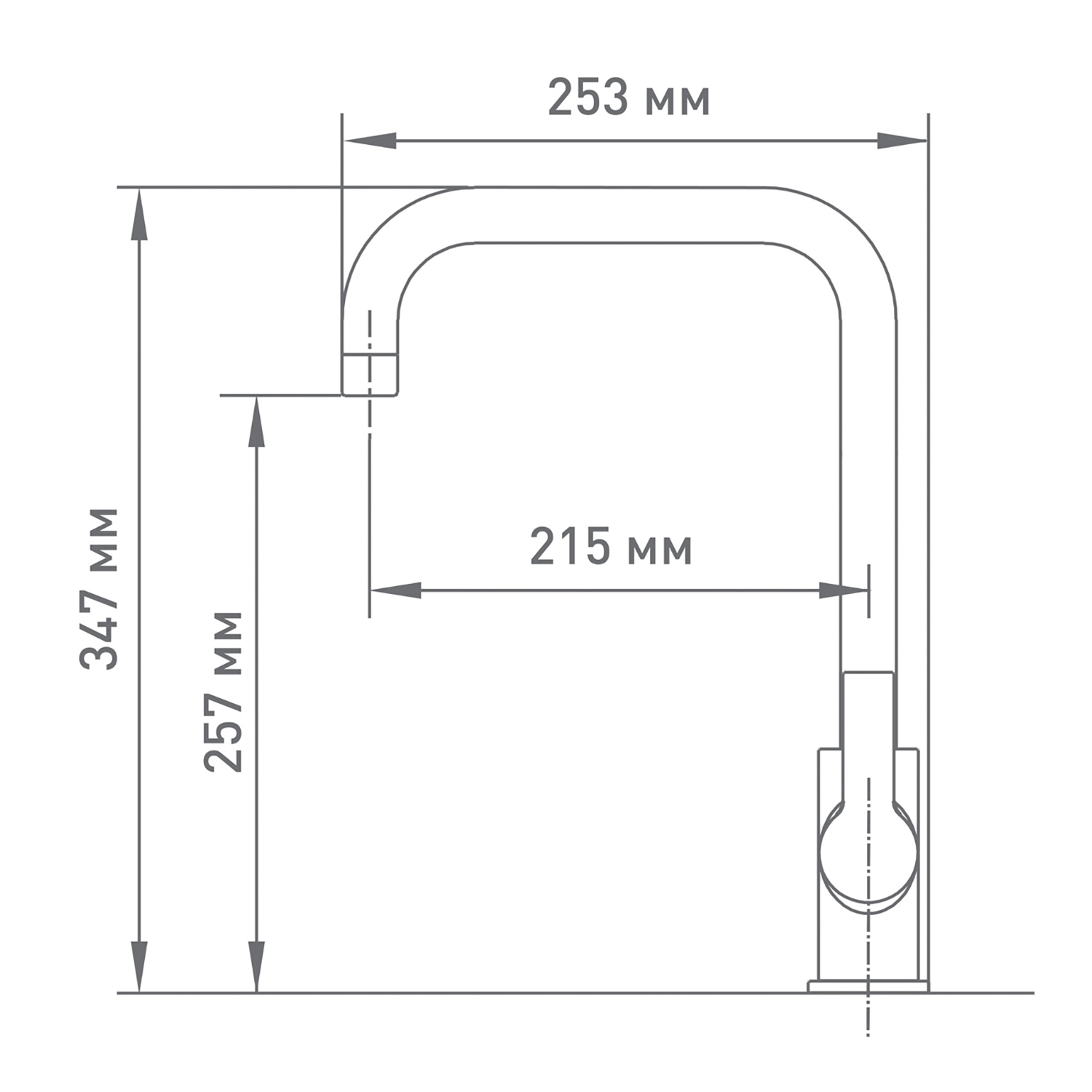 • Излив: Поворотный, высота 25,7 см, расстояние до точки падения воды 21,5 см