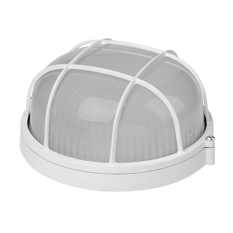 Светильник НПБ под Е27, 60 Вт, круг с решеткой, белый металл+стекло, IP54