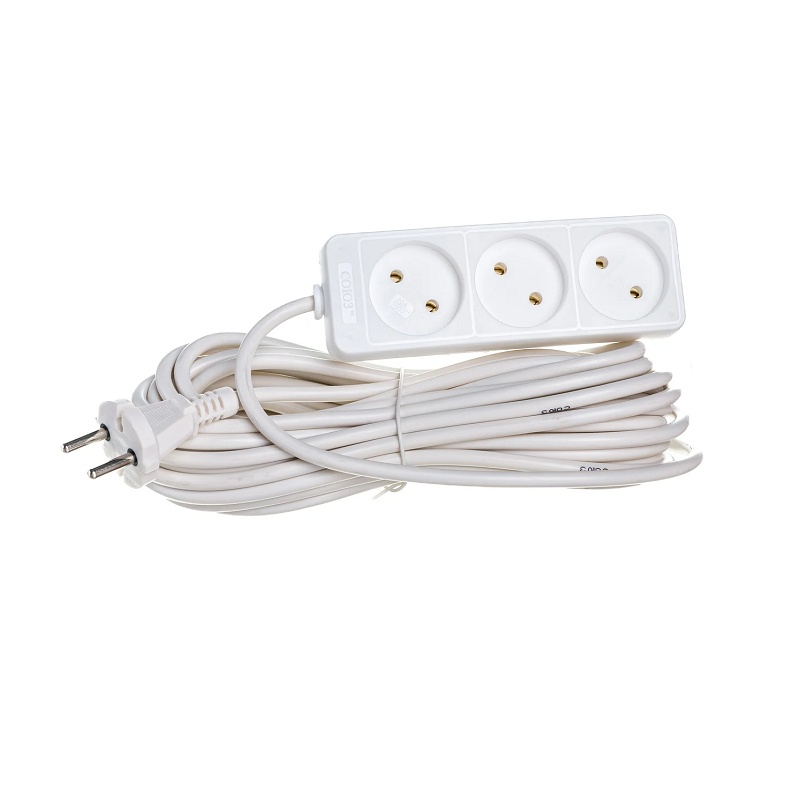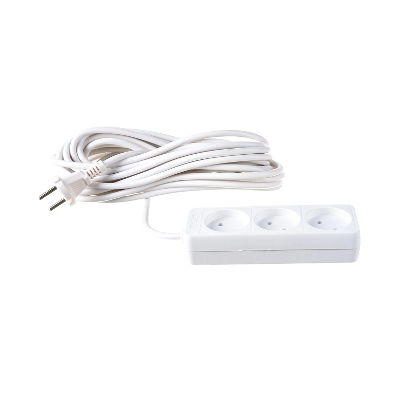 Удлинитель бытовой 481S-1310, 3 гнезда, ПВС, 2200 Вт, б/з, 10 м, белый