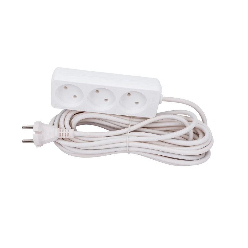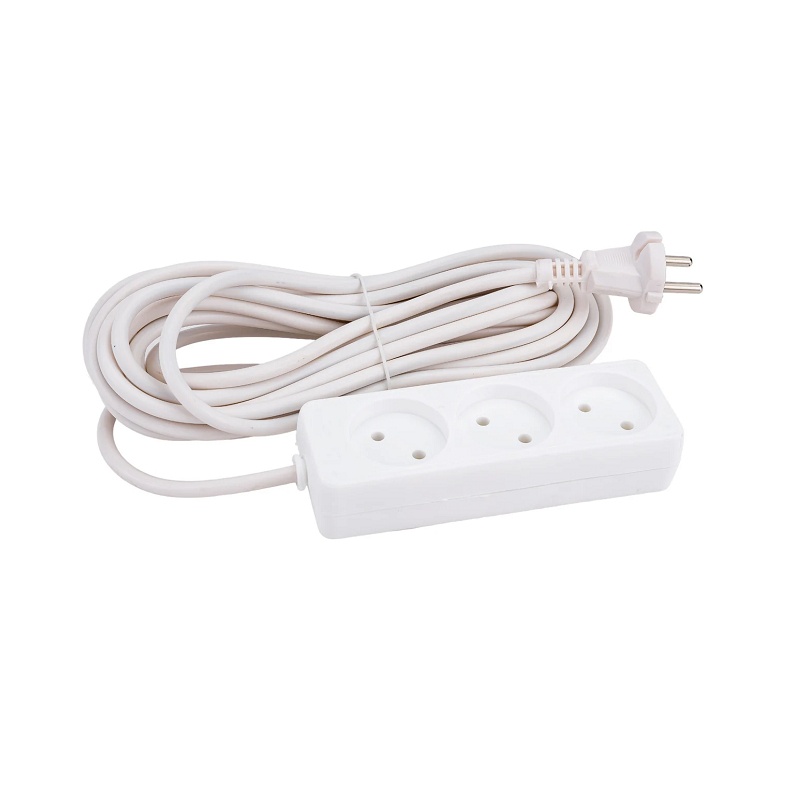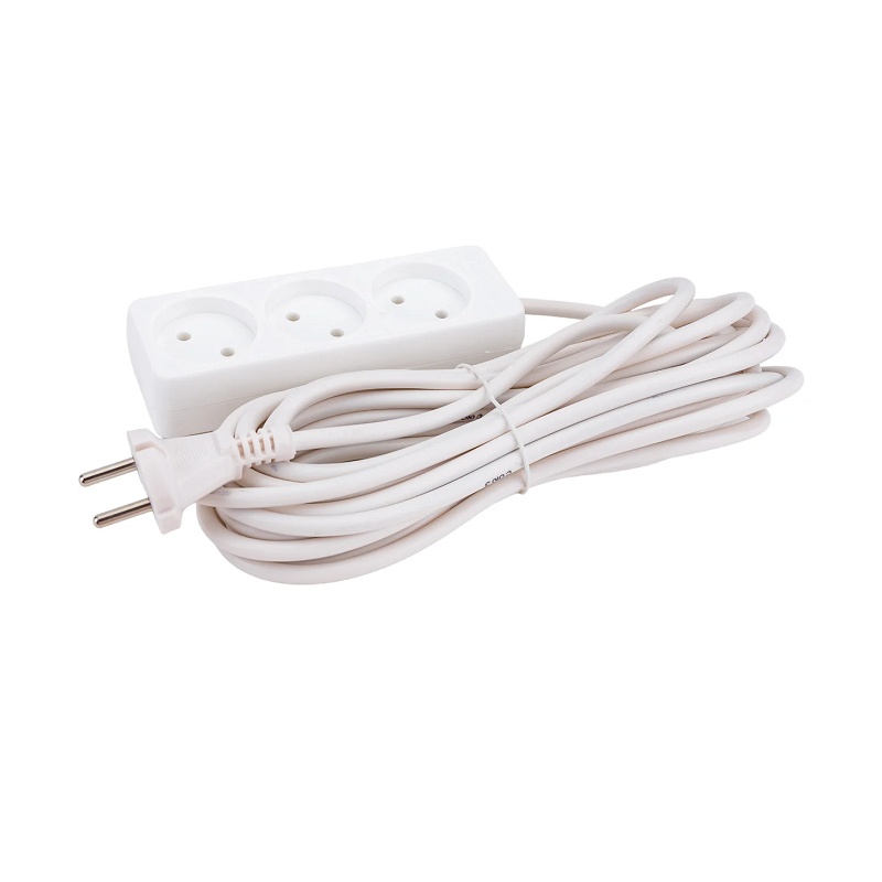 Удлинитель произведен в РФ. Корпус удлинителя изготовлен из трудногорючего полипропилена. Питающий провод повышенной гибкости в двойной изоляции армирован неразборной литой вилкой. Колодка удлинителя на 3 гнезда с заземлением позволит подключить до 3-х электроприборов суммарной нагрузкой не более 2200 Вт.