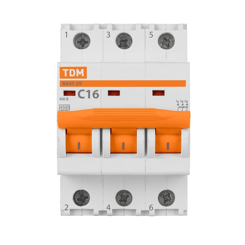 Выключатель автоматический TDM ВА 47-29, 4,5кА, С 16А, 3П