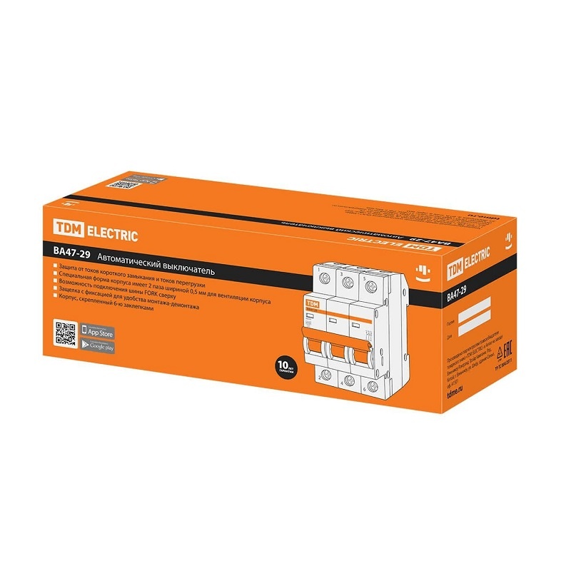 Выключатель автоматический TDM ВА 47-29, 4,5кА, С 25А, 3П